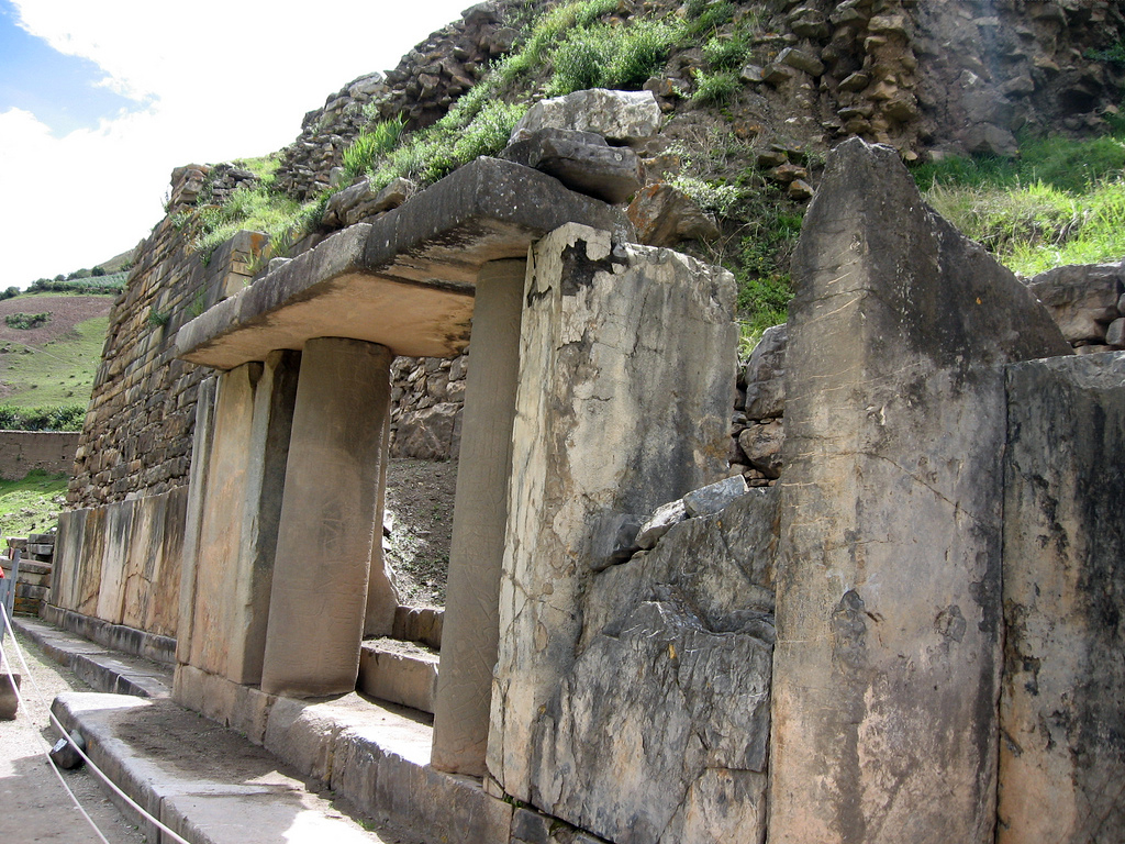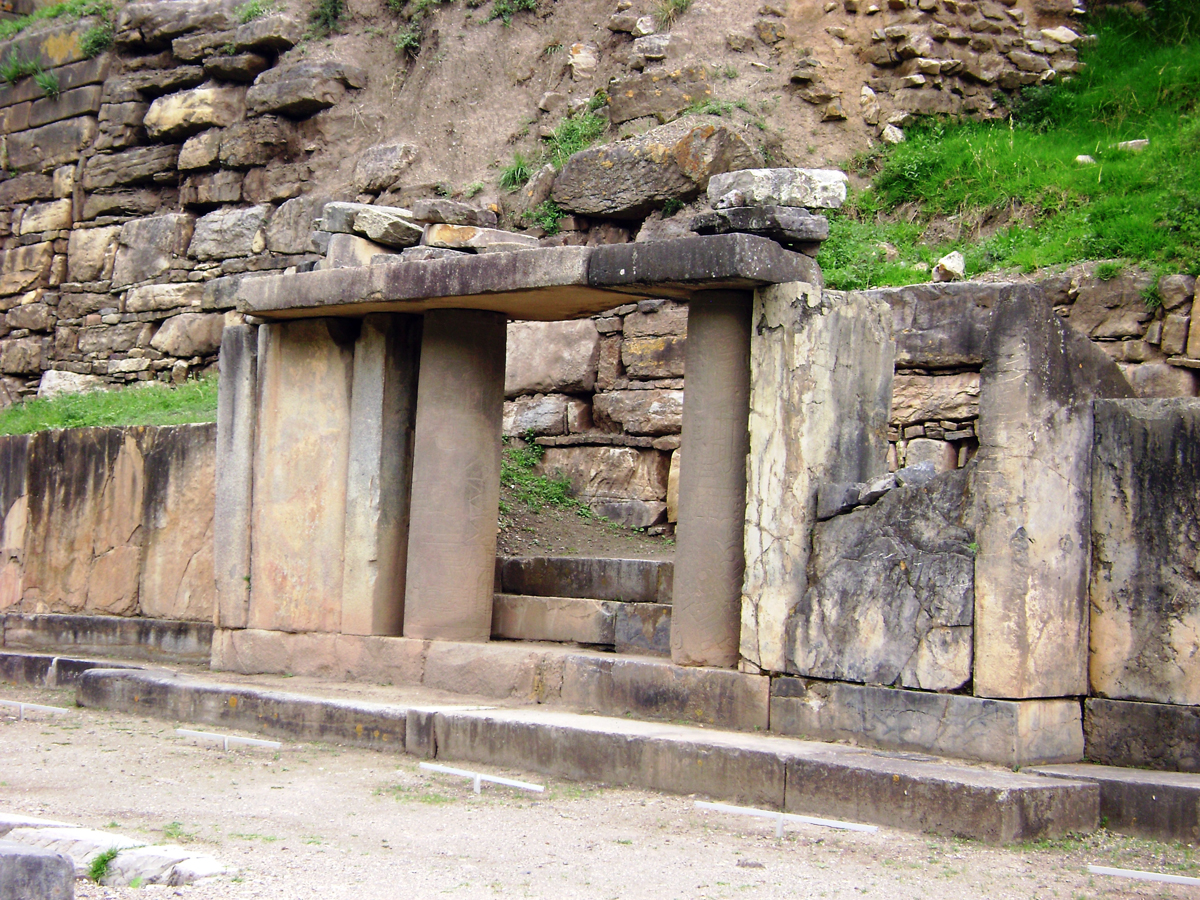 Las Falcónidas portal, New Temple, with monolithic columns.