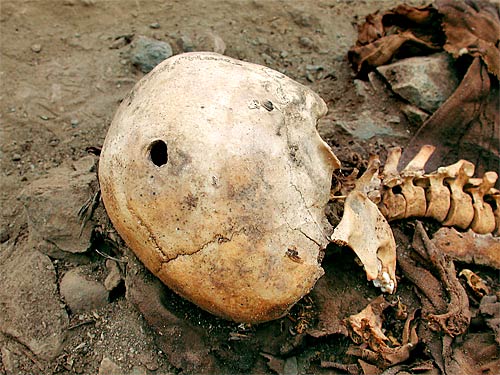 Many of the victims, including women and children, showed signs of extreme trauma, having been hacked, torn or impaled, said archeologist Guillermo Cock of Peru's National Institute of Culture.